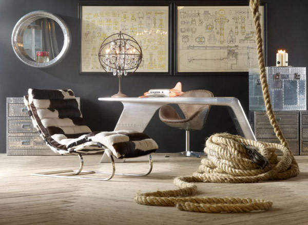 En las creaciones presentadas, evoca a diseños de viajes y también utiliza estilos industriales que combinan con elementos reconvertidos y reciclados.
