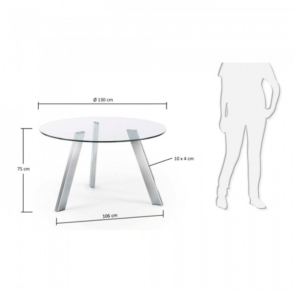Mesa Urban de 130 cm, Mesa redonda con pies de acero cromado. Sobre en cristal templado.