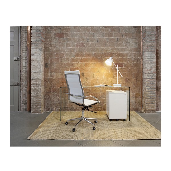 La silla dirección Oxford respaldo alto es una silla de oficina giratoria y elvable, con tejido ecopiel blanco. .