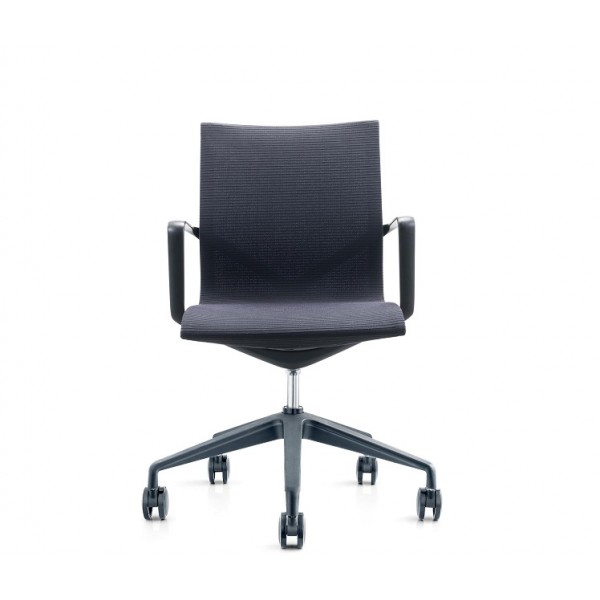 La silla de diercción Ulra es la combinación minimalista de una elegante estructura de asiento con una base de cinco radios sobre ruedas y de altura ajustable.