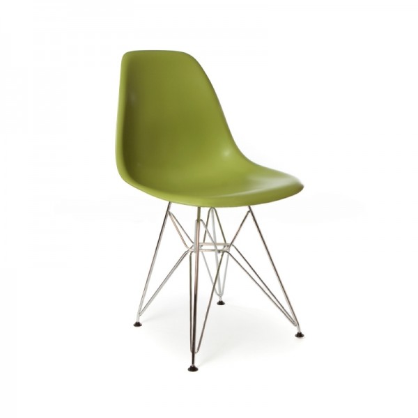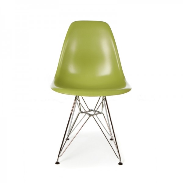 Silla de diseño réplica del modelo DSR diseñado por Charles & Ray Eames, con asiento en polipropileno de color verde con patas de metal. Se trata de la silla icono del S.XX y combina con cualquier estilo de decoración de interiores.