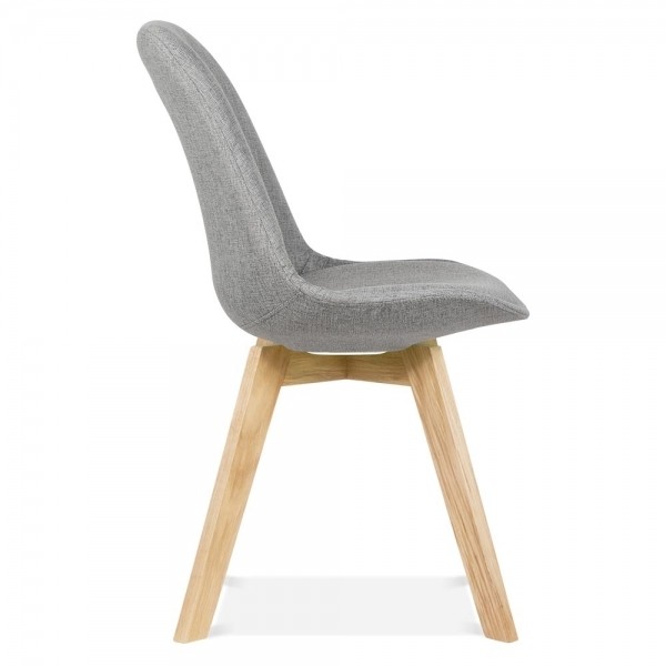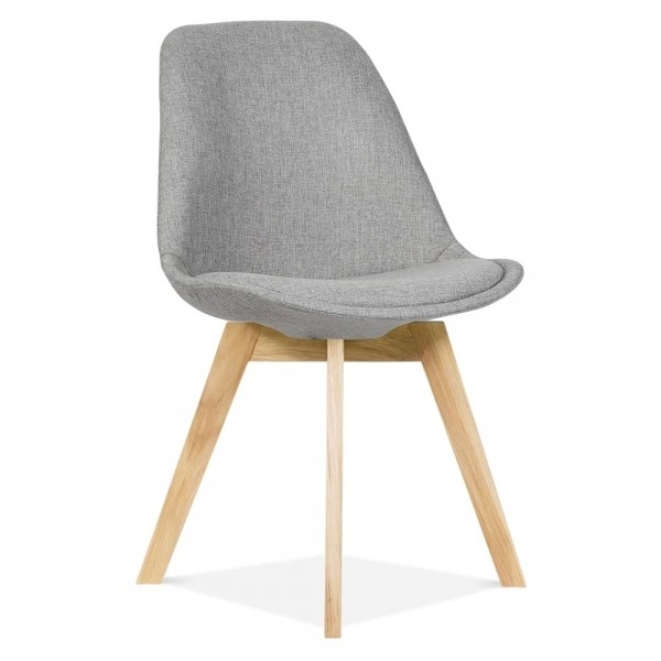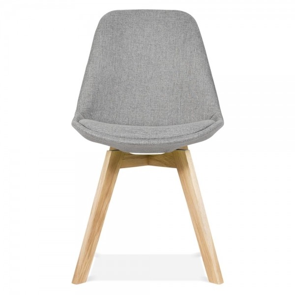 Silla nórdica tapizada en color gris, inspirada en el famoso diseño Eames, con patas en roble natural . Ideal para unificar tus estilos con este toque moderno y minimalista con mesas en madera.